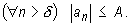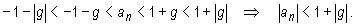 Załóżmy, że ciąg (an) jest zbieżny do granicy g. Niech ε = 1. Istnieje taka liczba natualna δ, że dla n > δ mamy ⎪ an − g⎪ < 1. Stąd oraz z własności wartości bezwzględnej otrzymujemy dla n > δ nierówności: