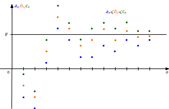 Graficzna ilustracja twierdzenia o trzech ciągach.